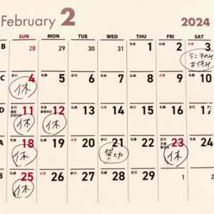 2024年2月の営業日